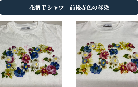 衣類の素材や染色状態などやシミが付いてからの時間などにより、シミの取れ具合が違います。色落ちが気になる方は洗いのプロへご依頼下さい。