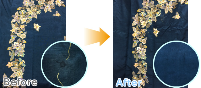 スレ直しもご覧のとおり、元通り!お気に入りの着物だということで大変喜んで頂けました。