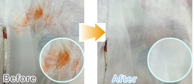 長年着ておられたらしく普通では落ちないしみ汚れもご覧の通り。